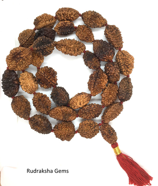 3 Three Mukhi Rudraksha Mala Kantha Surya Agni Siddha Mala 33 +1 Rudraksh Japa Beads - 3 face Rudraksha Mala - Rudraksha Collector Mala