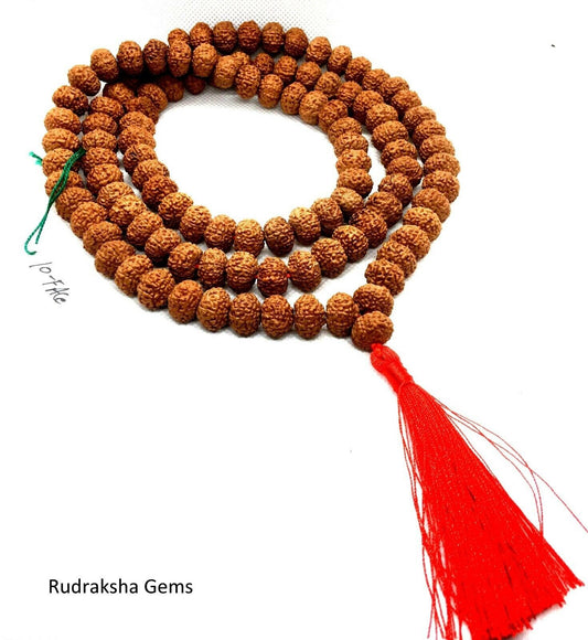 10 Mukhi Rudraksha Mala, 108+1 Genuine Ten facet Rudraksha beads, Long Tassel Mala, Beautiful Mala, Natural beads Japa Mala Yoga OM beads