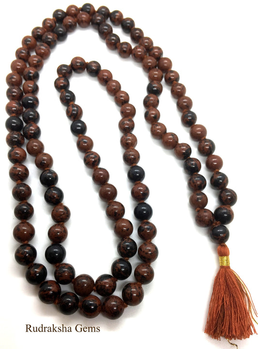 108 Mala Beads - Obsidian Mahogany Hand Knotted Mala Necklace - Meditation Beads Prayer Necklace - mahogany obsidian 108 beads buddhist mala