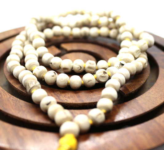 108 Tulsi Holy Basil Hand Knotted Mala Beads Necklace - Karma, Nirvana, Yoga Meditation, 6 mm Prayer Beads -Krishna Prayer Mala necklace